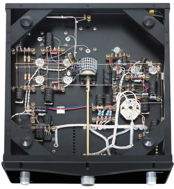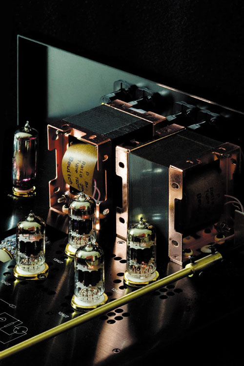 *整機(jī)除放大線路末級(jí)采用變壓器耦合外,其他線路均采用直流耦合(放大部分采用二級(jí)直流耦合,穩(wěn)壓電路采用三級(jí)直流耦合),無(wú)一顆音頻耦合電容,徹底跟音頻耦合電容說(shuō)Bye-Bye, 消除了電容對(duì)聲音的音染,還原“!钡谋緛(lái)聲音。